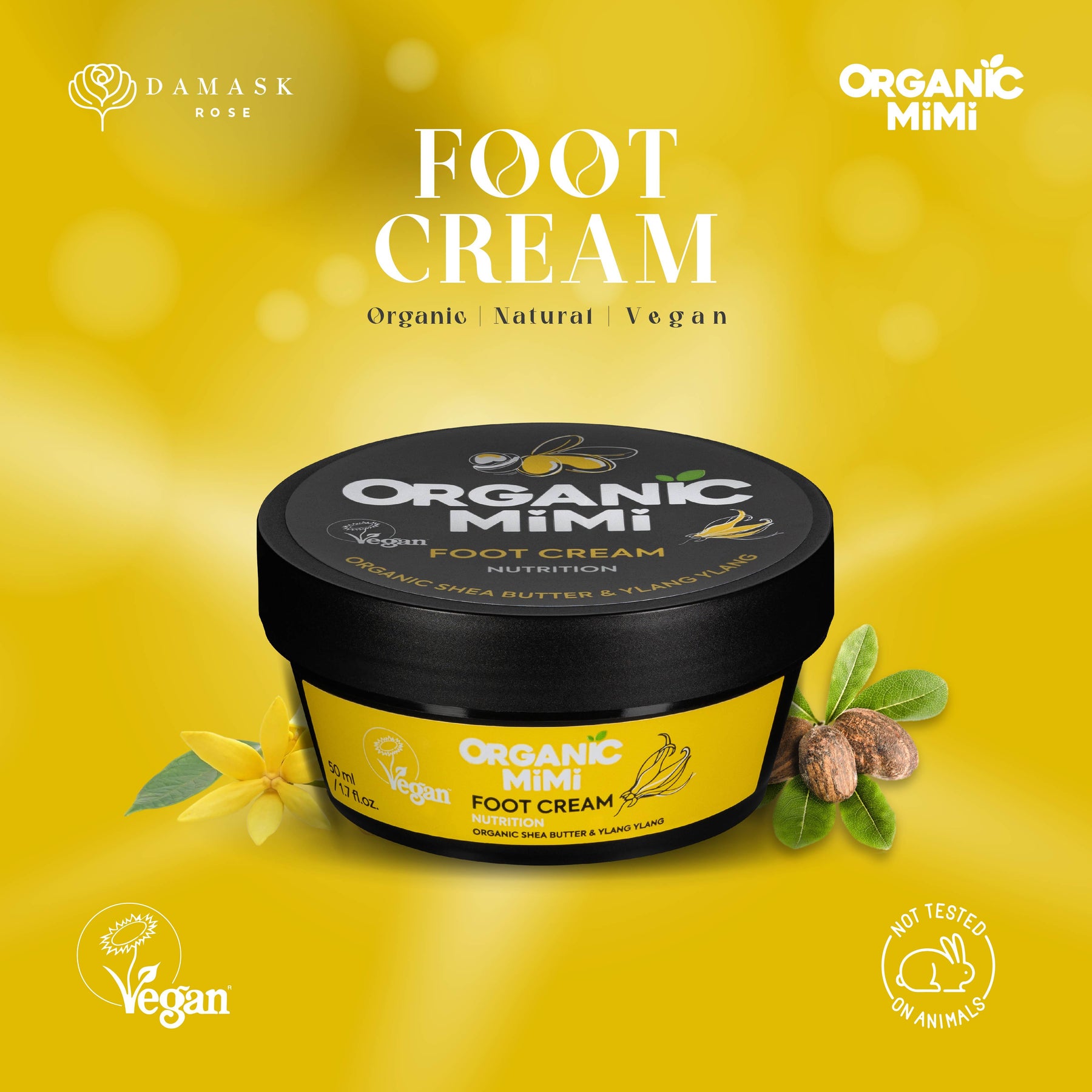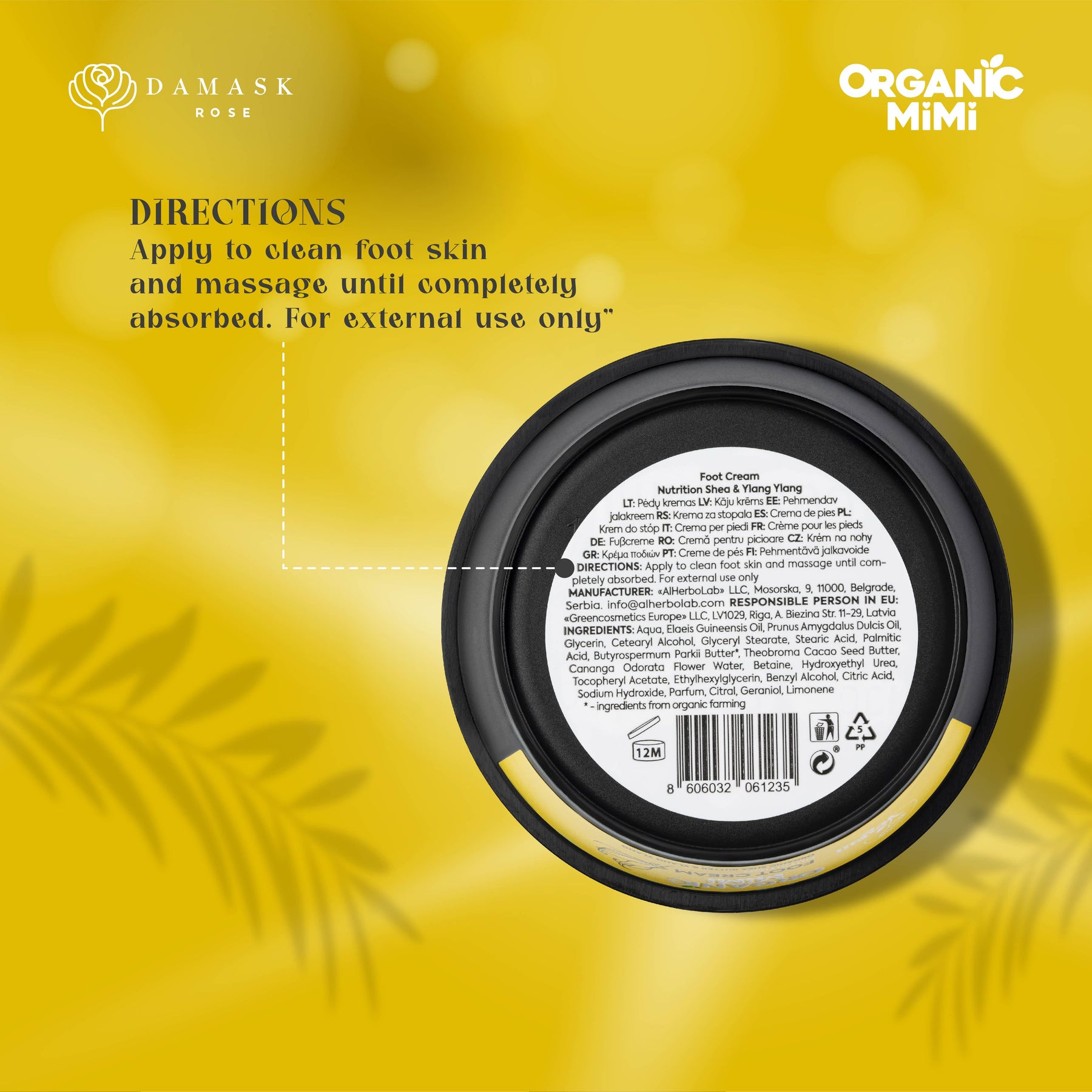 Foot cream based on Organic Shea Butter, Cocoa Butter and Ylang Ylang Hydrolat deeply nourishes, softens and moisturizes the skin, fights the problem of chapped feet. It is quickly absorbed and provides intensive care and comfort