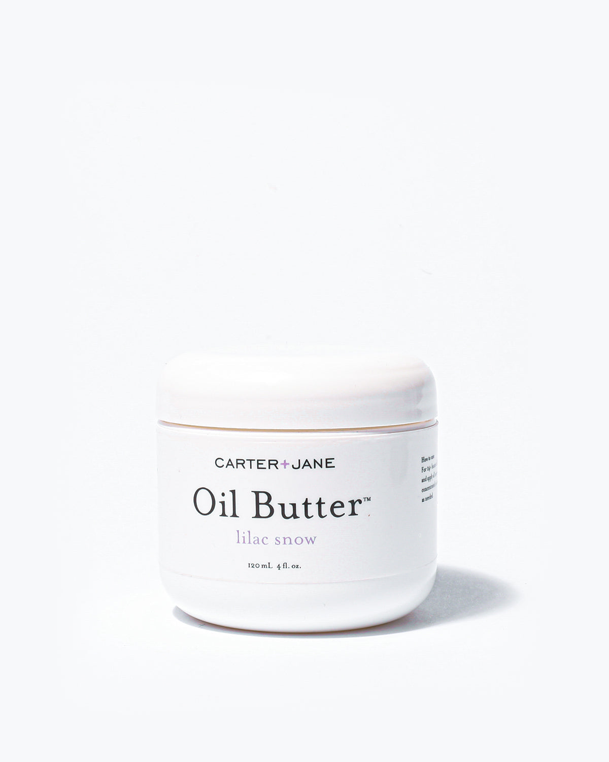 Lilac Snow Oil Butter™ comes in a recyclable 4 oz/120 mL white jar.