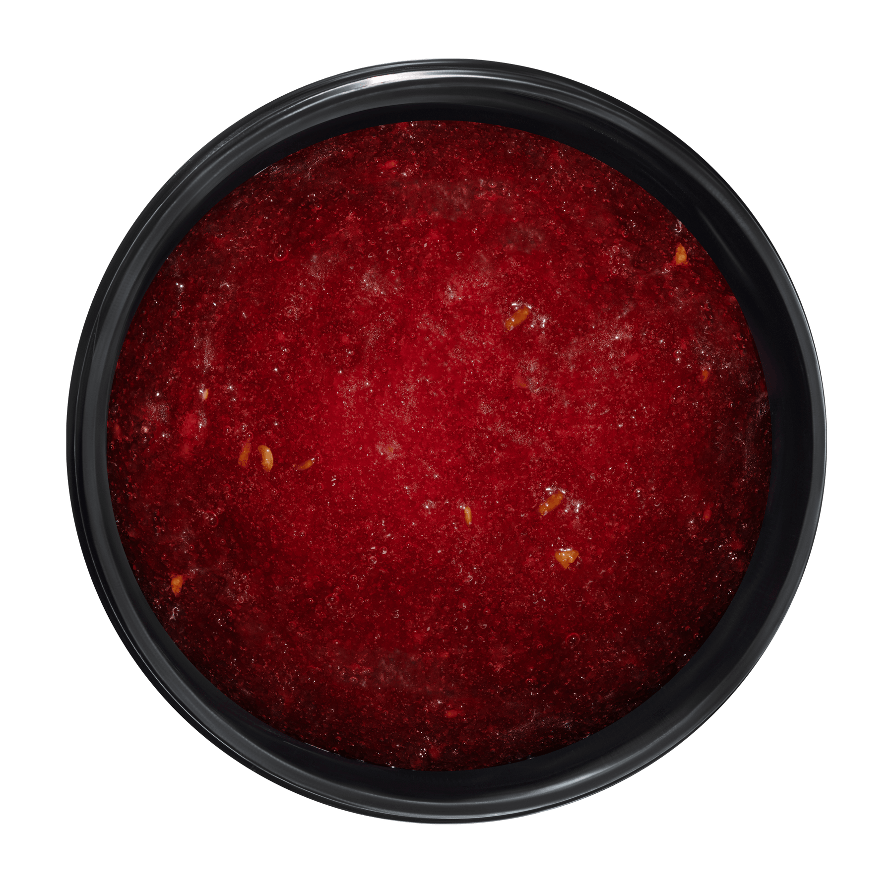Sugar scrub based on strawberries and organic almond oil is the best choice for gentle cleansing of the most delicate and sensitive skin
