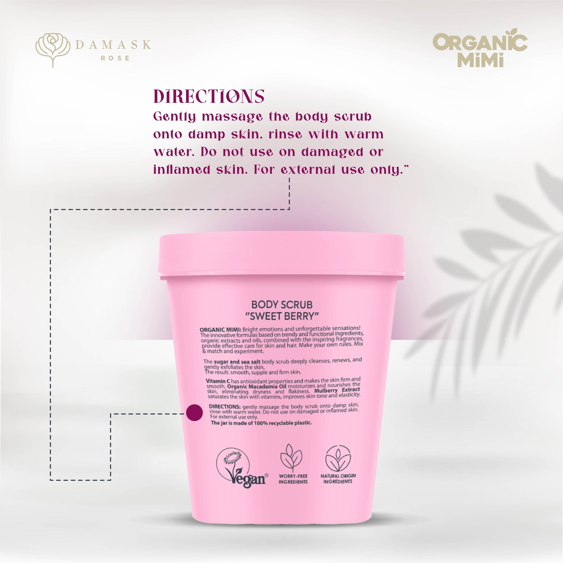 DIRECTIONS: Gently massage the body scrub onto damp skin, rinse with warm water. Do not use on damaged or inflamed skin. For external use only.