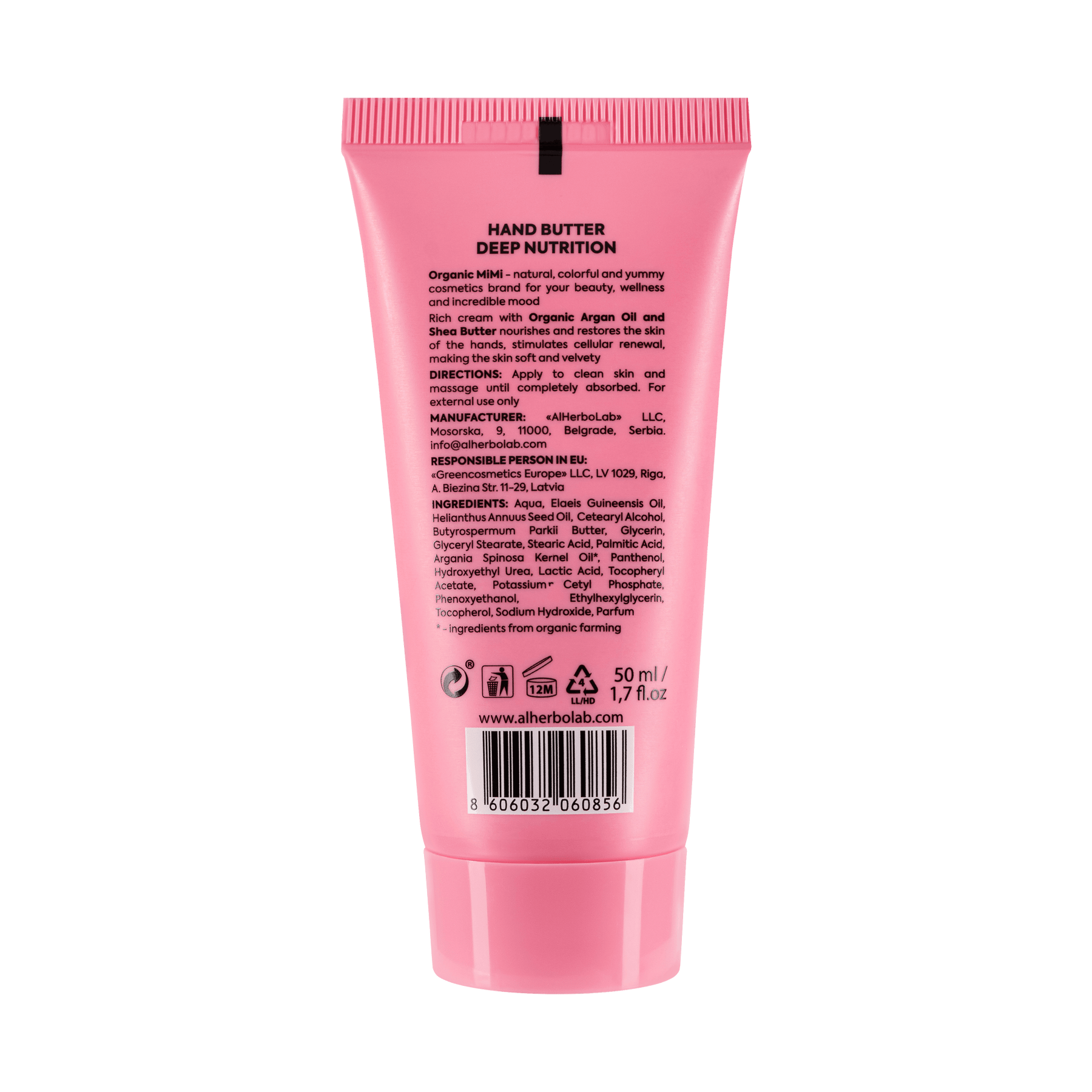 Rich cream with Organic Argana Oil and Shea Butter nourishes and restores the skin of the hands, stimulates cellular renewal, making the skin soft and velvety