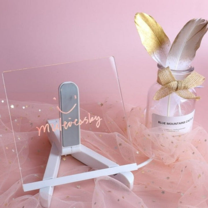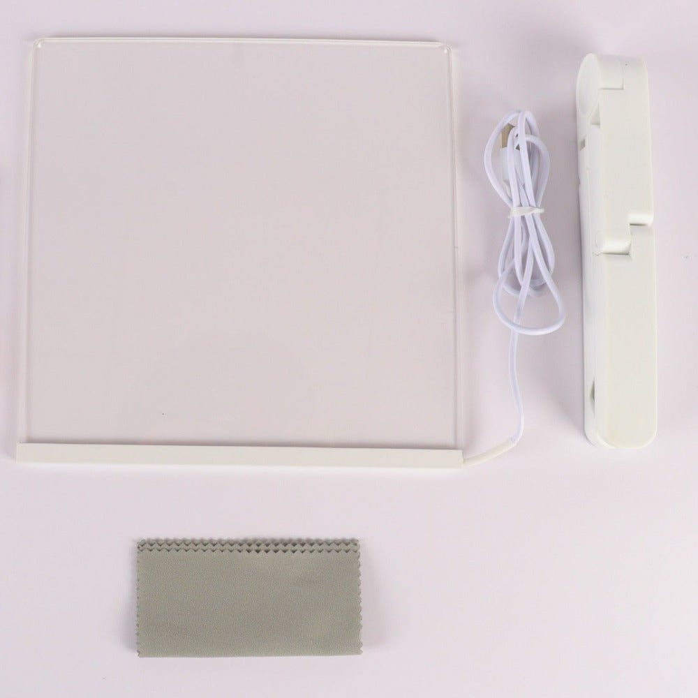 Looking for a fun and creative way to write down your notes? Check out this glowing message board set! This board is perfect for jotting down messages and to-dos. It comes with a USB power cord and seven colored markers. The acrylic board has immersive warm light that glows beautifully when plugged in. Get yours today and light up your notes and messages!