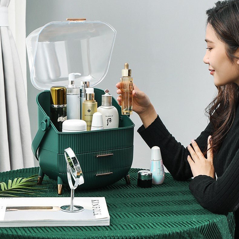 Each cosmetic item will find its rightful place, enabling you to effortlessly create stunning looks with ease. Say goodbye to the stress of searching for misplaced products or struggling with a cluttered mess. The Ultimate Cosmetics Storage Box brings order and efficiency to your beauty routine, allowing you to focus on what truly matters – expressing your unique style.
